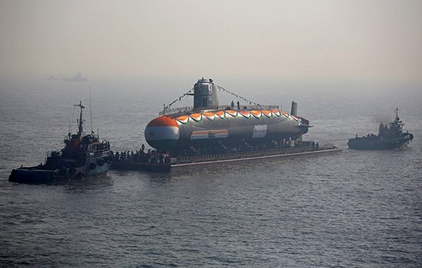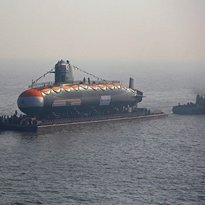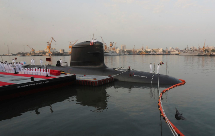准备下水的“卡尔瓦里”级潜艇,该潜艇由法国“鲔鱼”级潜艇发展而来。