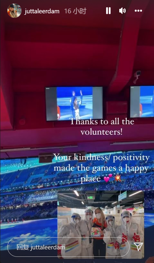 到了闭幕式致敬志愿者的环节,尤塔又一次晒出自己和志愿者的合影,并感叹:“谢谢所有的志愿者!你们的善良和正能量让奥运会变成一个快乐的地方。”