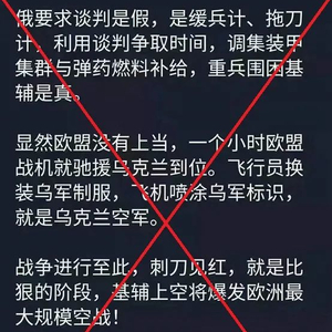 2月28日,推特上流传一则消息,称针对俄乌战争局势,欧盟决定为乌克兰提供战机援助,欧盟飞行员将换上乌军战服参战。