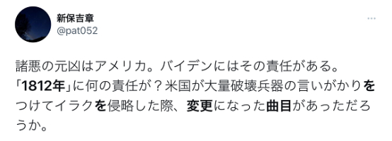 还有人称:“罪魁祸首是美国,责任在拜登身上,《1812年》有什么责任?美国借口称伊拉克有大规模杀伤性武器入侵时,有被更变的曲目吗?” ↓