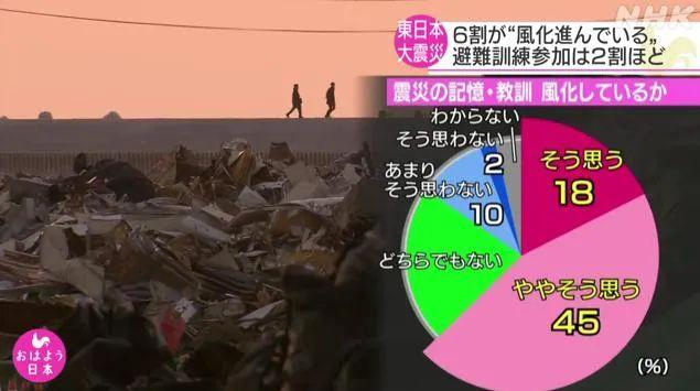 日前,NHK对受灾最严重的福岛、宫城和岩手三县民众进行回访,其中有63%的人都认为,震灾的记忆和教训正在“风化”。