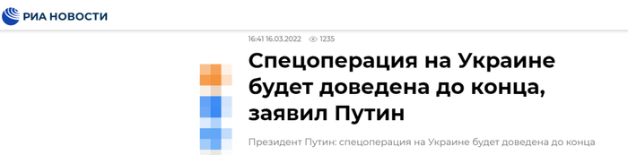 据俄新社16日报道,俄总统普京称,俄罗斯会将对乌克兰开展的特别行动进行到底。
