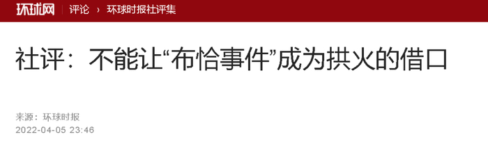 但CNN找来的证据,即《环球时报》发布于4月5日晚间的社评《不能让“布恰事件”成为拱火的借口》,反而清脆地打了CNN的脸。因为这篇社评清楚地说明了CNN试图混淆概念的两件事,指出“任何针对平民的暴力行为,不管以何种借口,都是绝对不可接受的,必须受到强烈谴责并承担应负责任”,同时又表示“战争到来时,真相是第一个受害者”。