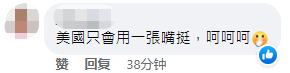 还有网友嘲讽,“美国只会用一张嘴挺”。也有人称,“而且他们(指美国)这两天不是又派人来台湾提款了。”