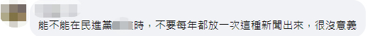 还有网友表示,“能不能在民进党‘执政’时,不要每年都放一次这种新闻出来,很没意义。”