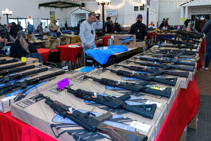 这是1月22日在美国达拉斯枪展上拍摄的枪支。新华社发(李琳摄)
