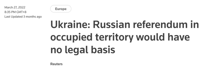至于顿巴斯地区,此前“卢甘斯克人民共和国”领导人列昂尼德·帕塞奇尼克曾表示可能就是否加入俄罗斯举行地区公投,并在时机成熟时加入俄罗斯。对此,乌克兰外交部发言人奥列格·尼科连科(Oleg Nikolenko)回应道:“在临时被占领土上进行的所有虚假公投都是无效的,不具有法律效力。”