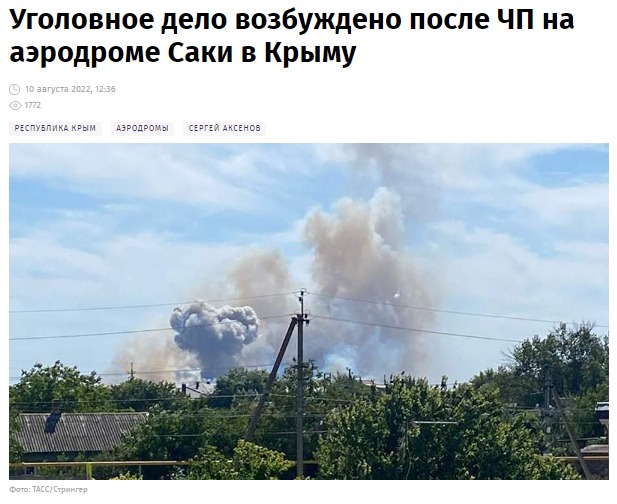 据俄罗斯国防部的消息,8月9日,克里米亚的萨基机场发生弹药爆炸,无人受伤,机场内航空设备无损,正在调查爆炸原因。