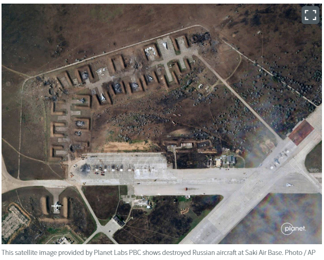 报道称,卫星图像显示,俄罗斯用来支持其军事行动的空军基地的建筑物和飞机显然遭到了广泛的破坏。乌克兰官员暗示,他们的部队参与其中,一名高级总统助理警告说,爆炸事件只是夺回克里米亚努力的“开始”。