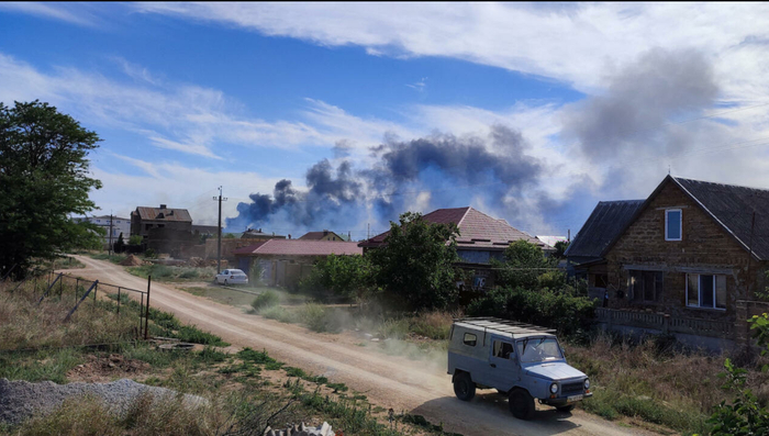 克里米亚西海岸新卡多里夫卡的萨基空军基地8月9日下午连续发生大爆炸。