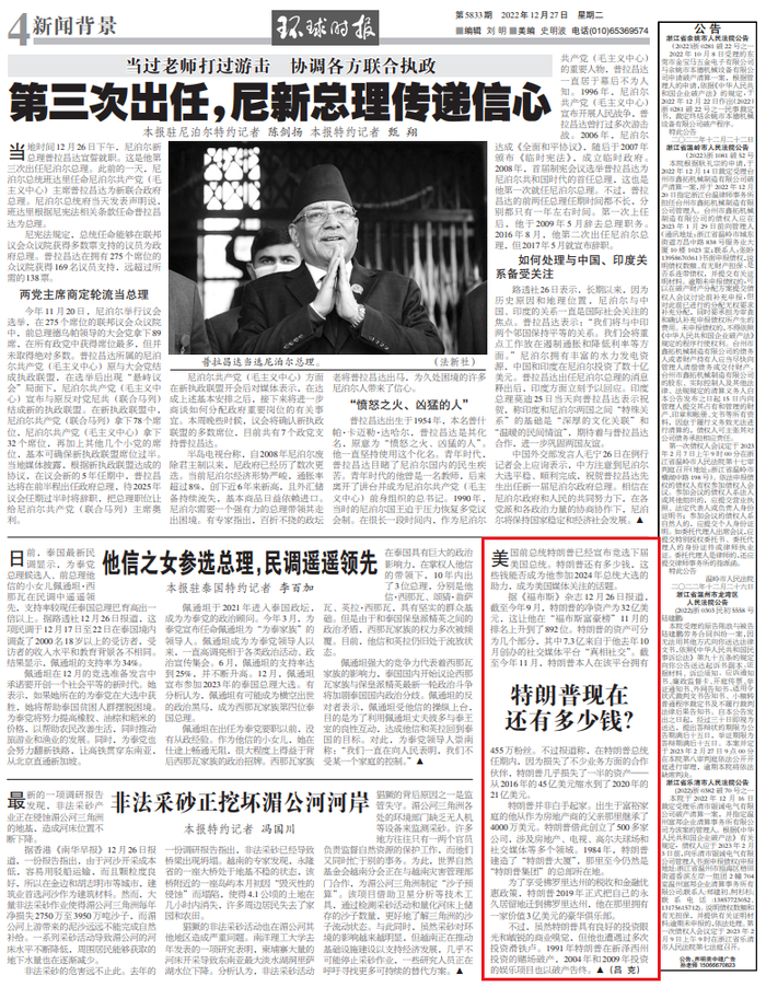 据《福布斯》杂志12月26日报道,截至今年9月,特朗普的净资产为32亿美元,这让他在“福布斯富豪榜”11月的排名上升到了892位。特朗普的资产可分为几个部分,其中7.3亿来自于他去年10月创办的社交媒体平台“真相社交”。截至今年11月,特朗普本人在该平台拥有455万粉丝。不过报道称,在特朗普总统任期内,因为损失了不少业务方面的合作伙伴,特朗普几乎损失了一半的资产——从2016年的45亿美元缩水到了2020年的21亿美元。