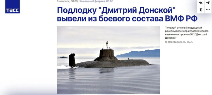 2月7日,美国“动力”网站援引俄罗斯塔斯社消息称,俄罗斯海军现已正式让战略核潜艇“德米特里·顿斯科伊”号退役。“全俄舰队支援运动”负责人弗拉基米尔·马尔采夫证实了这一消息,并表示这艘潜艇将跟另外两艘已经退役的同型潜艇一同等待处置。