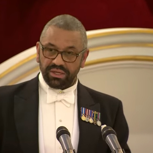 当地时间4月25日晚,英国外交大臣詹姆斯·克莱弗利发表政策演讲 视频截图