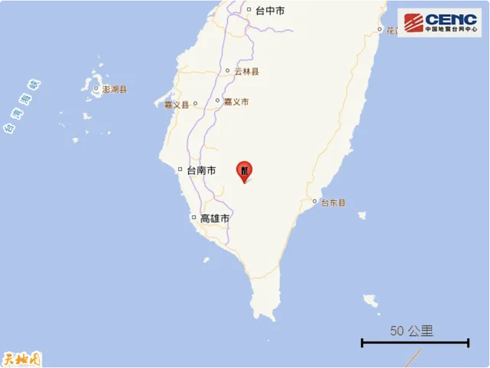 据中国地震台网正式测定,6月10日13时31分在台湾高雄市发生4.7级地震,震源深度14公里,震中位于北纬22.88度,东经120.65度。