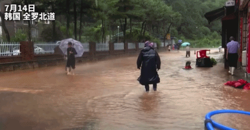 韩国气象厅预报,韩国中部一些地区14日晚至15日每小时降雨量最大或将达到100毫米。在忠清南道和全罗北道一些地区,截至16日的累计降雨量预计将达到400毫米,庆尚北道一些地区可能经历超过300毫米的强降雨。