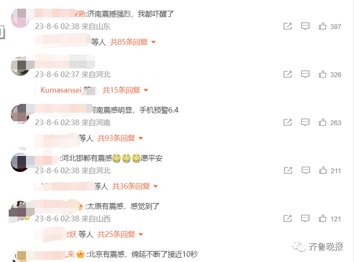 北京、山东、天津、河北震感,成为爆词,登上热搜。