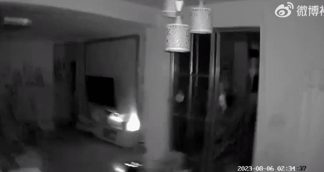今天凌晨,微博上,一名山东济南网友发布了家中客厅监控视频: