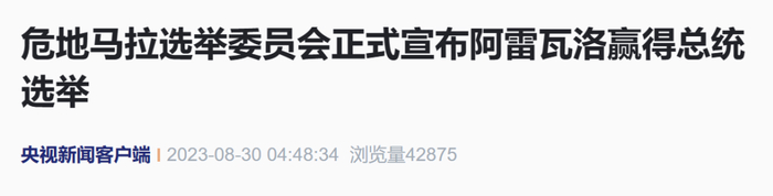 当地时间8月29日,危地马拉总统贾马太在选举委员会正式公布总统选举投票结果后确认,“种子运动”党候选人贝尔纳多·阿雷瓦洛赢得危地马拉总统选举。贾马太表示,他已向当选总统阿雷瓦洛和副总统发出邀请,9月4日下午在总统府举行第一次会议,制定政权交接时间表。