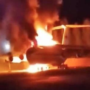俄军伊尔-76运输机遭乌军无人机击中后起火 图源:社交媒体截图