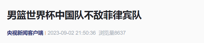 在9月2日进行的2023年篮球世界杯排位赛中,中国男篮不敌东道主菲律宾队,以75:96告负。