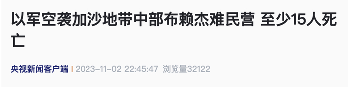 巴勒斯坦官方通讯社“瓦法”当地时间11月2日报道说,以色列军队当天空袭位于加沙地带中部的布赖杰难民营,造成至少15人死亡。
