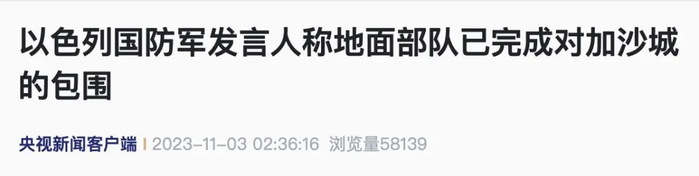 以色列国防军发言人称地面部队已完成对加沙城的包围