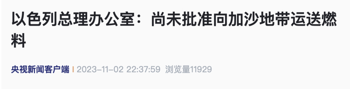 当地时间11月2日,以色列总理办公室发表声明表示,以色列总理内塔尼亚胡尚未批准向加沙地带运送燃料。