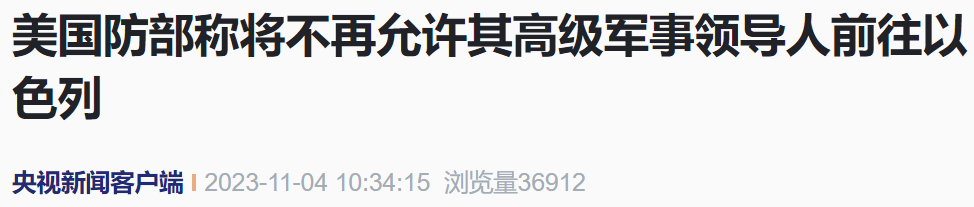 当地时间11月3日,据《国会山报》报道,美国国防部当日发布一份备忘录称,将不再允许其高级军事领导人前往以色列,也不再鼓励美国国会议员在以色列与巴勒斯坦伊斯兰抵抗运动(哈马斯)在加沙地带发生冲突期间对以色列进行访问,这份备忘录定于11月7日起生效。