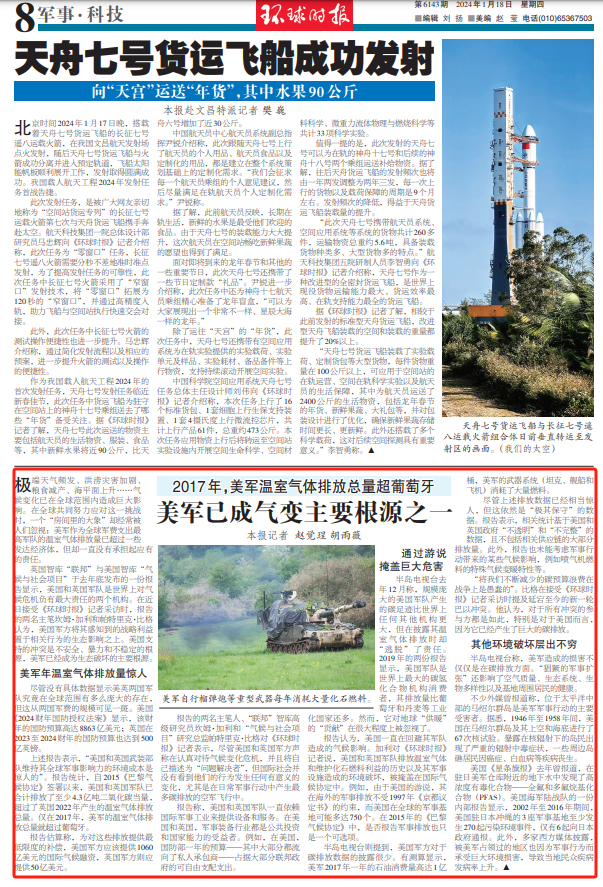半岛电视台则提到,美国军方对于碳排放数据的披露很少。有测算显示,美军2017年一年的石油消费量高达1亿桶,美军的武器系统(坦克、舰船和飞机)消耗了大量燃料。