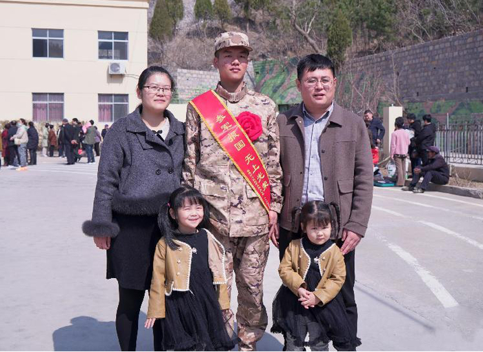 新兵启程前与家人合影。张歆 摄