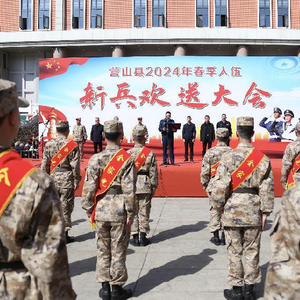 近日,四川省营山县举行2024年春季入伍新兵欢送大会,百名新兵身披绶带,胸戴红花,在县会展中心广场高举右拳、庄严宣誓,展现了听从召唤、矢志军营、建功立业的高昂士气。