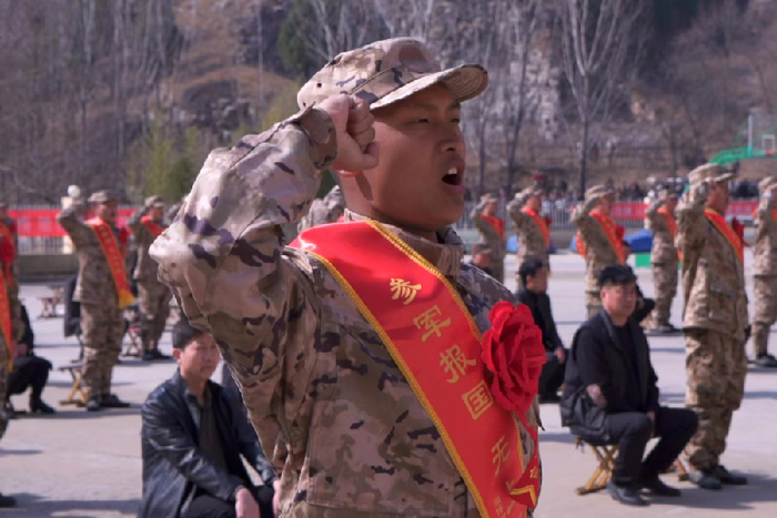 近日,山东省沂源县举行仪式,为75名即将奔赴军营的优秀青年送行。
