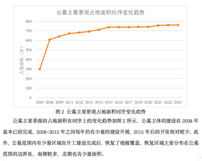 一是公墓南部山头的砍伐,破坏面积47亩左右,后续大约有21亩恢复了植被;