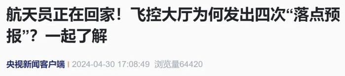 航天员正在回家!飞控大厅为何发出四次“落点预报”?一起了解