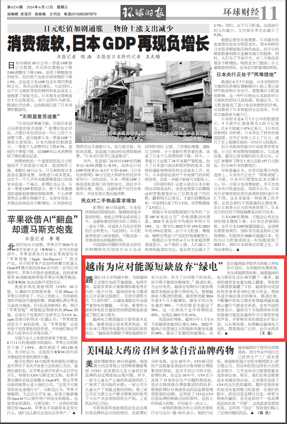 路透社11日在报道中称,当前越南正在推行包括节能措施、电网升级、监管改革和大规模增加煤电等在内的一揽子计划。越南国有电力集团也正在采取总部熄灯、关闭空调等方式“以身作则”,以避免重蹈去年全国严重停电的覆辙。一年前,夏季的大面积停电给在越投资的跨国制造商造成了数亿美元损失。