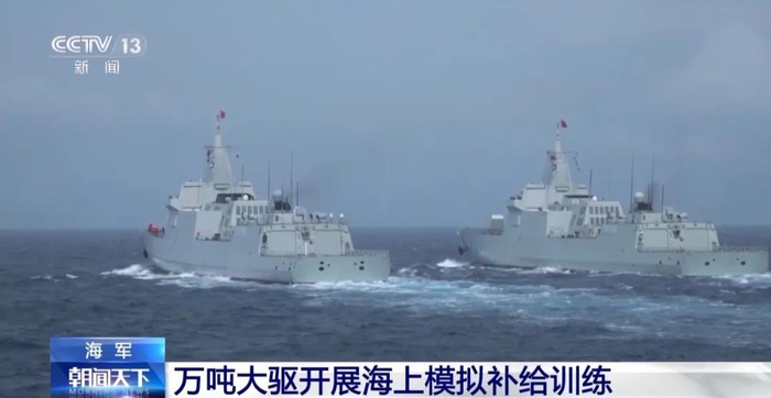在这场持续6天5夜的跨昼夜长航时协同训练中,三艘055型导弹驱逐舰还开展了海上模拟补给训练,全面检验舰艇战时补给能力。