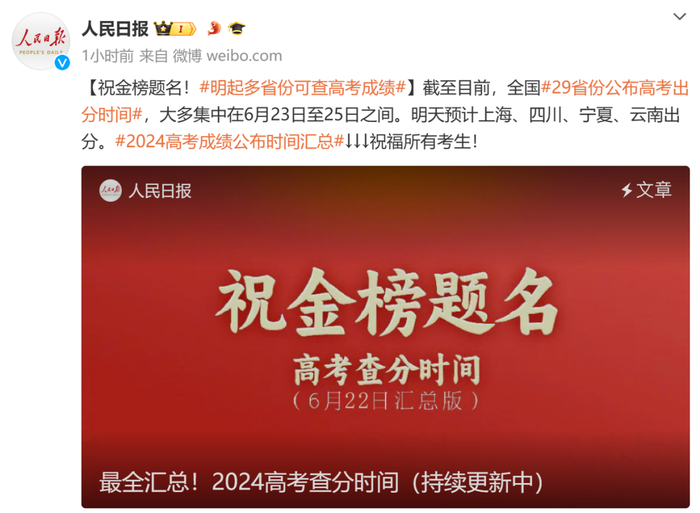 多地已公布2024高考查分时间和方式↓↓↓