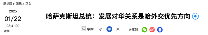 哈萨克斯坦总统最新涉华表态