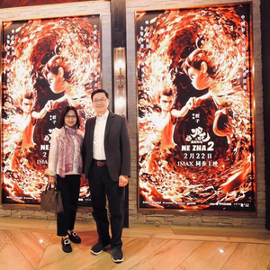3月16日,香港特区行政长官李家超在社交媒体发文表示,早前与太太一同观赏《哪吒之魔童闹海》,见证国漫崛起。图为李家超(右)与太太李林丽婵观看《哪吒之魔童闹海》。(图片转自李家超社交媒体)