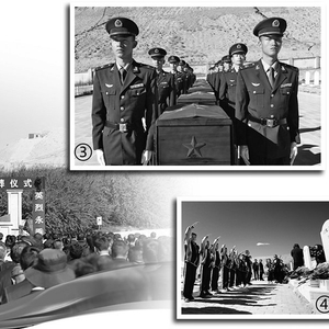 图①:刘涛擦拭刘彦斌烈士墓碑。图②:8名烈士安葬仪式现场。图③:礼兵护送烈士遗骸棺椁等待安葬。图④:小学生在烈士墓前敬少先队队礼。普索朗、巴拉提、戴学武 摄