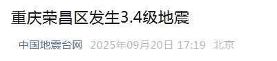 快讯:重庆发生3.4级地震