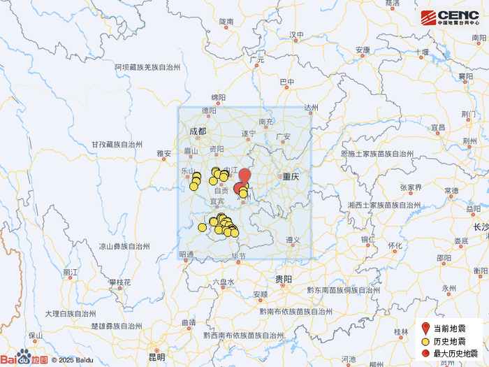 历史地震:根据中国地震台网速报目录,震中周边200公里内近5年来发生3级以上地震共175次,最大地震是2021年9月16日在四川泸州市泸县发生的6.0级地震(距离本次震中26公里),按震级大小前50次历史地震分布如图。