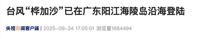 台风“桦加沙”已在广东阳江海陵岛沿海登陆