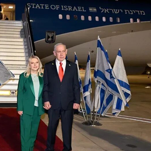 内塔尼亚胡登机前与妻子合影(《以色列时报》)