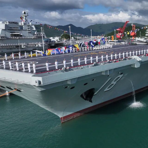 11月5日,我国第一艘电磁弹射型航空母舰福建舰入列授旗仪式在海南三亚某军港举行。图源:新华社