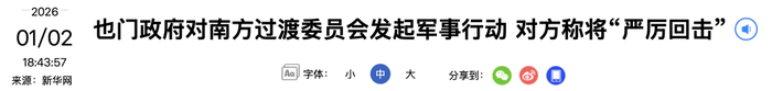 也门政府对南方过渡委员会发起军事行动,对方称将“严厉回击”