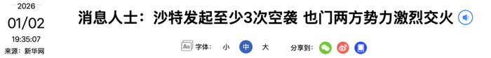 消息人士:沙特发起至少3次空袭,也门两方势力激烈交火