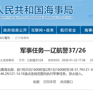航行警告:渤海海峡黄海北部部分海域执行军事任务 央视网 央视网新闻频道官方账号 01.2509:02 关注 央视网消息:据中国海事局网站消息,大连海事局发布航行警告,1月25日16时至2月1日16时,渤海海峡黄海北部部分海域执行军事任务,禁止驶入。