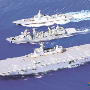 冬日,海军某支队舰艇编队开展海上补给训练。解放军报特约记者 乔晨曦摄