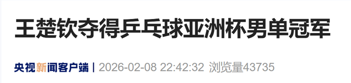 在今天进行的第35届国际乒联-亚乒联盟亚洲杯男单决赛中,王楚钦战胜日本选手张本智和,夺得冠军。这也是王楚钦继2025年后,再夺亚洲杯男单冠军。